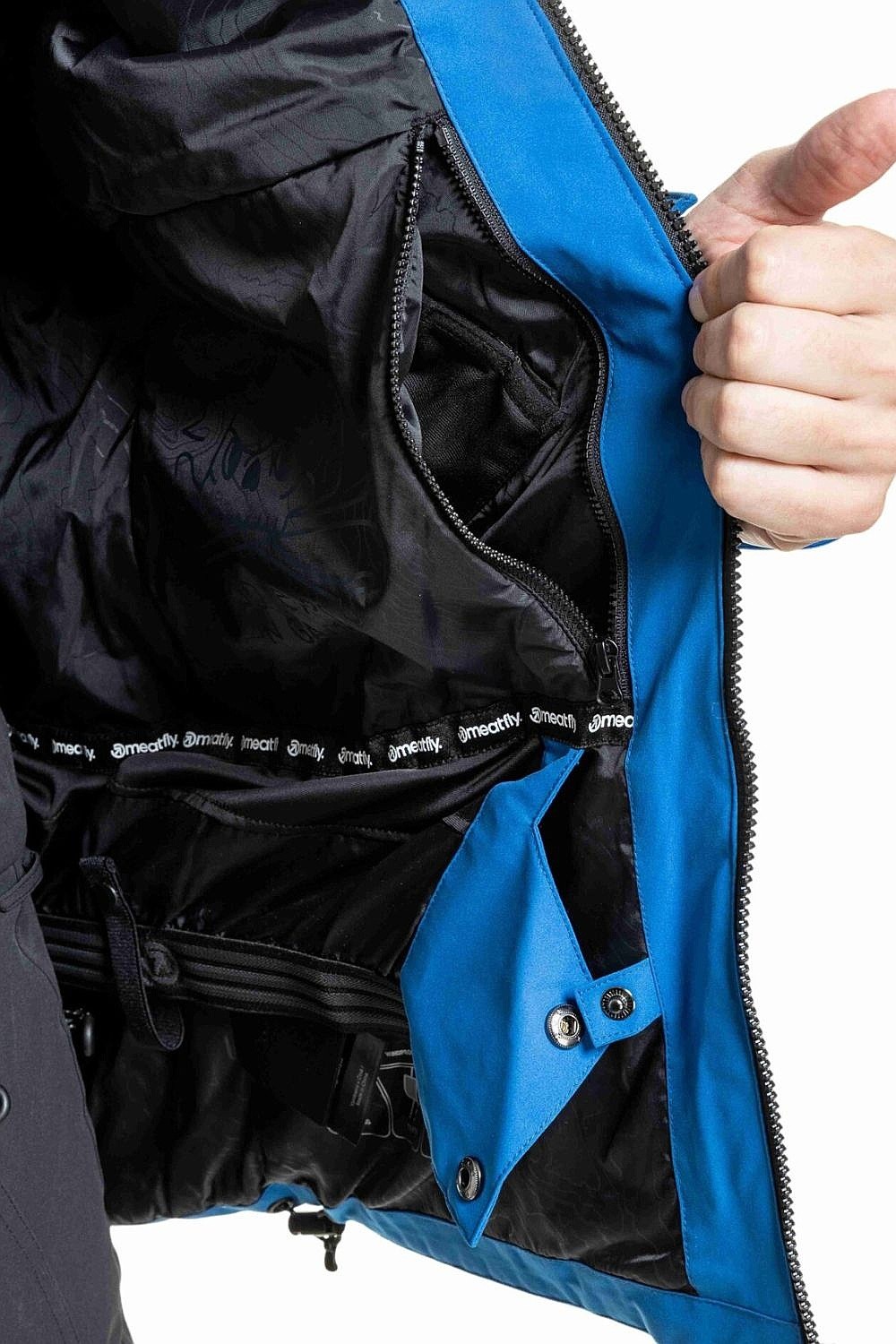 Pánska zateplená snowboardová a lyžiarska bunda Meatfly Cronos - štýlová bunda vyniká pekným dizajnom a zároveň jej nechýbajú funkčné parametre, bez ktorých sa pri zimných športoch nezaobídete. Je určená na jazdu v náročných podmienkach, keď sa potrebujete spoľahnúť na materiál aj funkcie. Vodoodolnosť 15 000 mm vás ochráni pred mokrým snehom a dažďom, zatiaľ čo priedušnosť 10 000 g/m²/24h zaručí, že sa neprehrejete ani počas intenzívnej jazdy. Dvojvrstvová konštrukcia s membránou MF-TECH chráni pred vetrom a vlhkosťou, zatiaľ čo izolácia MF-TERM vás udrží v teple bez zbytočného zvyšovania hmotnosti. Praktické vetranie v podpazuší, snehový pás, nastaviteľné prvky a detaily, ako je tkanina na okuliare, ukazujú, že bunda je pripravená na celodennú jazdu a zmeny počasia.